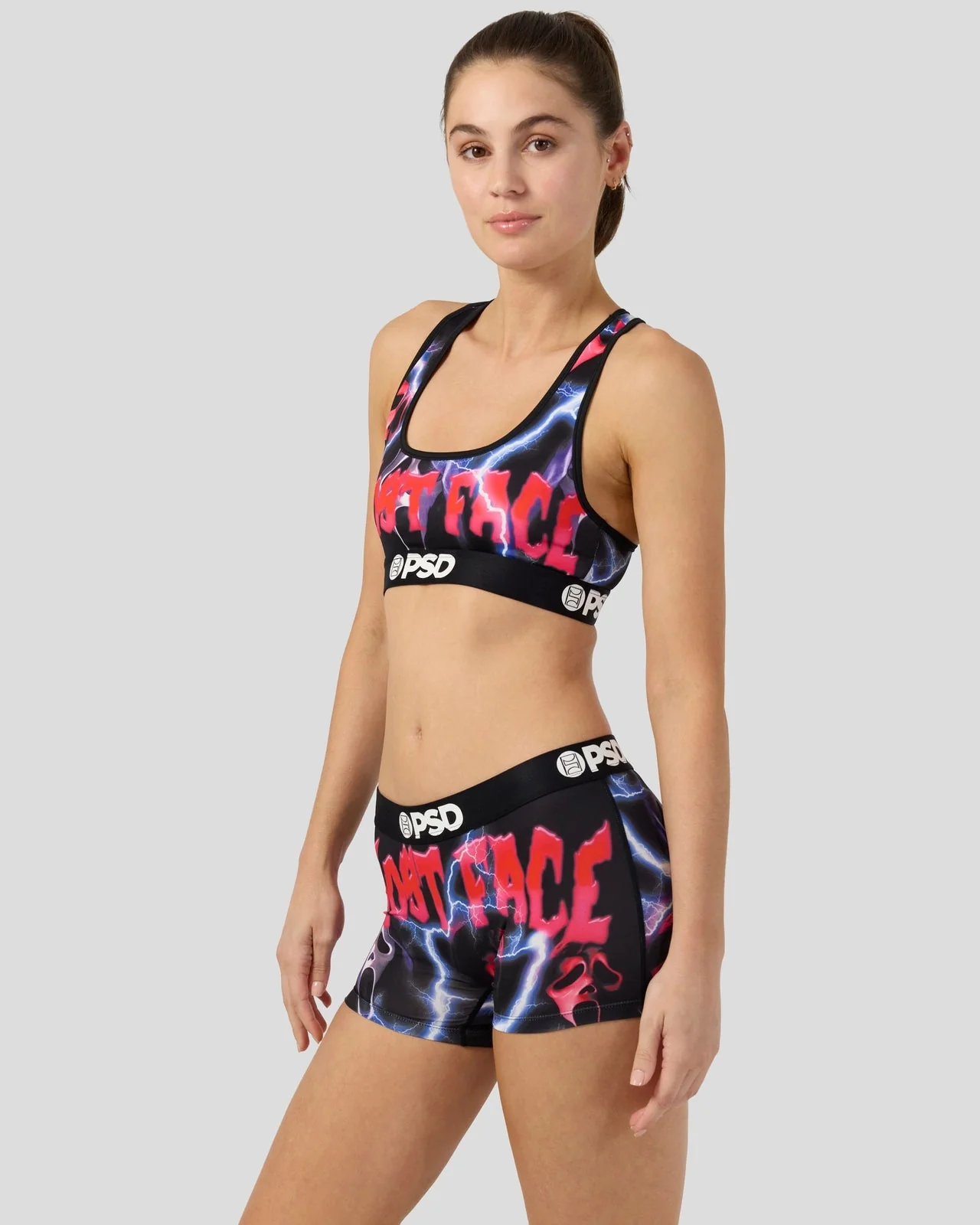 Do you like scary movies? Don't miss this chilling new drop from Ghost Face x PSD. The Hype Boy Short is made from a silky poly blend with a comfortable full coverage, keep-you-in fit. The PSD boy shorts are perfect for everyday wear and working out.