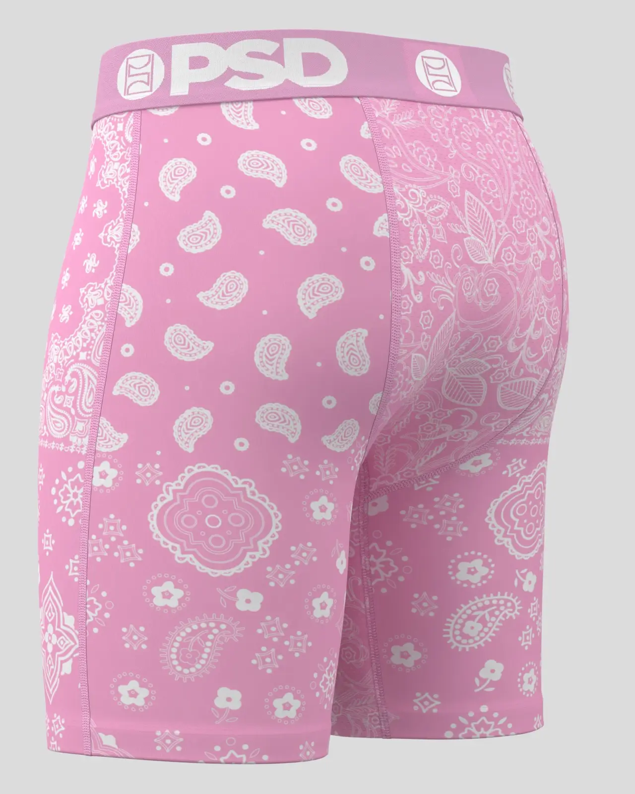 The Pink Hype Bandana briefs include our ultra-comfortable Signature WaistBand, a breathable MicroMesh pouch, and four-way stretch. The PSD 7” Standard Length Briefs won't roll or ride and were built for everything, from everyday wear to your toughest workouts.