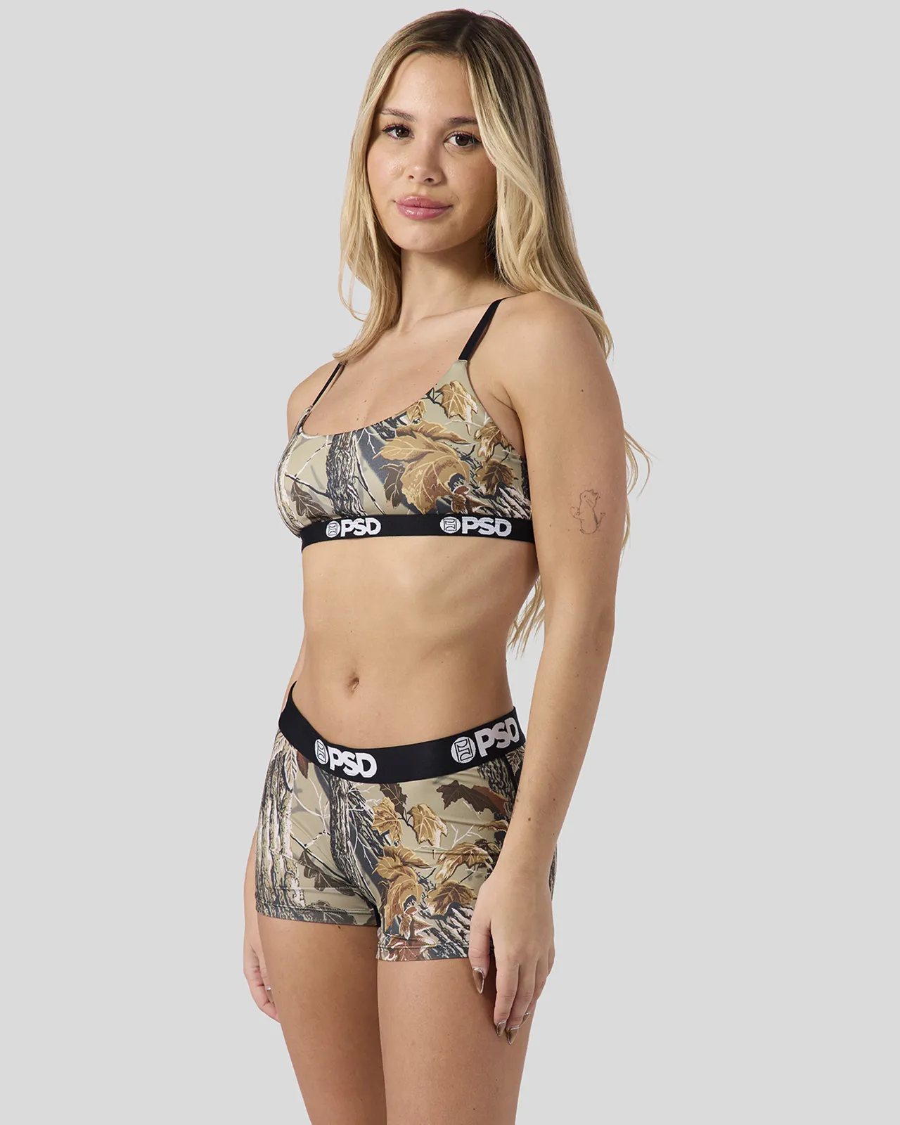 The latest from Realtree x PSD is a modern take on their classic, rugged camo print. The Xtra Grey Scoop Bralette almost feels like you're not wearing a bra at all. It’s fully lined, and features include adjustable straps, a cute scoop neckline, and a soft microfiber band that won't ride or rub.